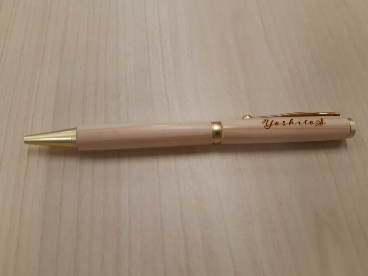 椎葉村産材を利用した、ヒノキのボールペン(回転式)です。手作りで一つ一つを作っています。木の表情(木目)も違い同じものはありません。木のぬくもりとともに、名前を入れることで更なるオリジナル感をお楽しみください。(※最大「5mm×40mm」以内への文字入れ可能です。備考欄に希望の文字をご記入ください。)