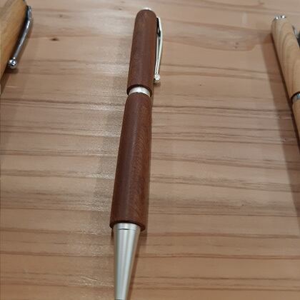 本体を回すとペン先の出し入れができる回転式ボールペンです。手作りで一つ一つを作っています。木の表情(木目)も違い同じものはありません。木のぬくもりとともに、名前を入れることで更なるオリジナル感をお楽しみください。